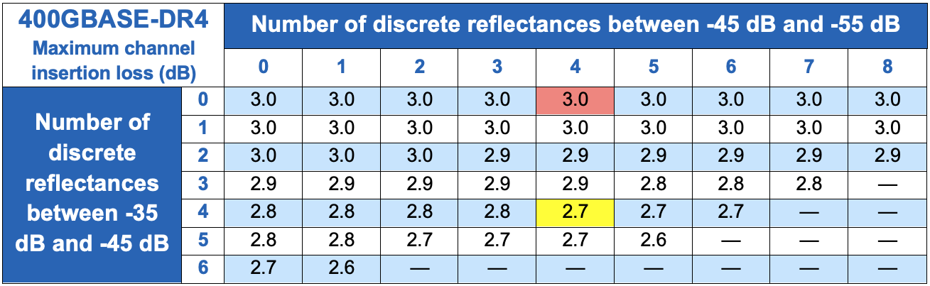 Table 1. Maximum channel insertion loss for 400GBASE-DR4 applications