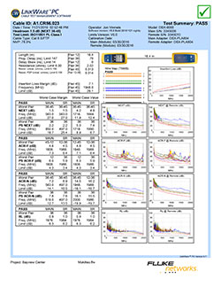 LinkWare PC prints professional, graphical reports with color graphs depicting the measured test parameters. You can choose which parameters to print and the order in which graphs appear. Reports can also be customized with your company logo.