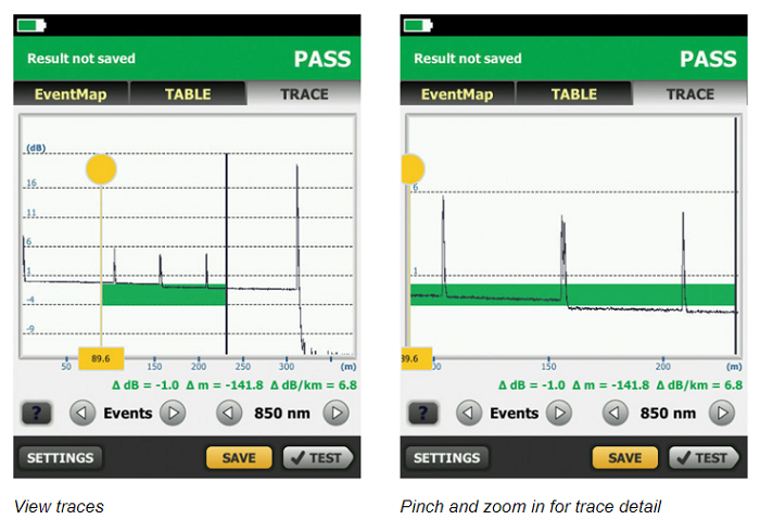 - Easily characterize all connectors, splices and areas of high loss with graphical EventMap view.