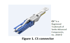 TIA has started a new project for a Fiber Optic Connector Interface Standard (FOCIS-19 that details the CS connector. This connector is a duplex ceramic ferrule connector smaller in size than two LC connectors and takes advantage of the need for higher density in data centers. The ferrules are 1.25 mm (See Figure 1). The initial offering is with single-mode fiber.
